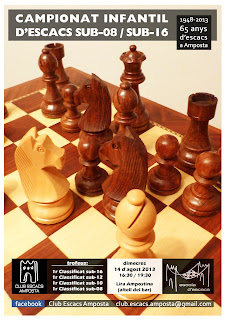 Aquest dissabte 15 de juny, d'11:00 a 13:00, s'ha celebrat el campionat infantil d'escacs de fi de curs. Els participants han estat els alumnes de les classes a les escoles de primària d'Amposta i els de les classes a l'Escola d'Escacs els dissabtes pel matí.